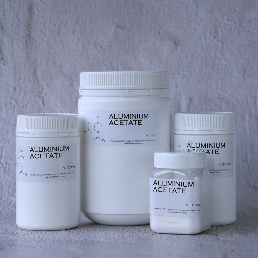 Aluminum acetate is a mordant powder used to create rich colors on primarly plant-based fabrics like cotton and linen. It's an alternative to traditional tannins.