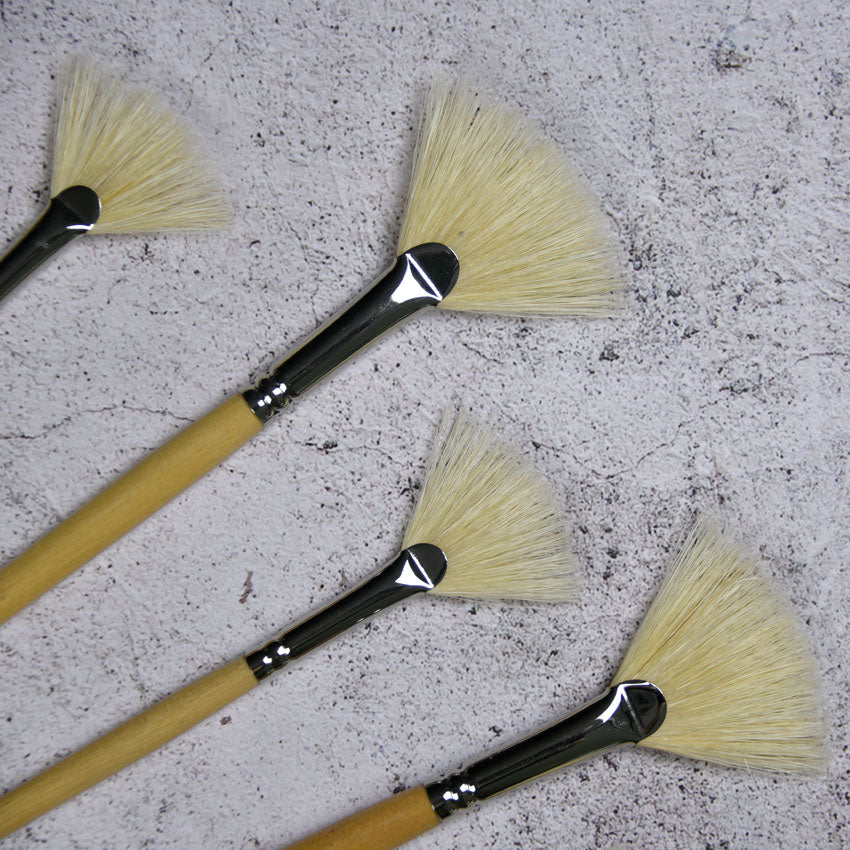 Fan long-handled bristle brushes in various sizes.