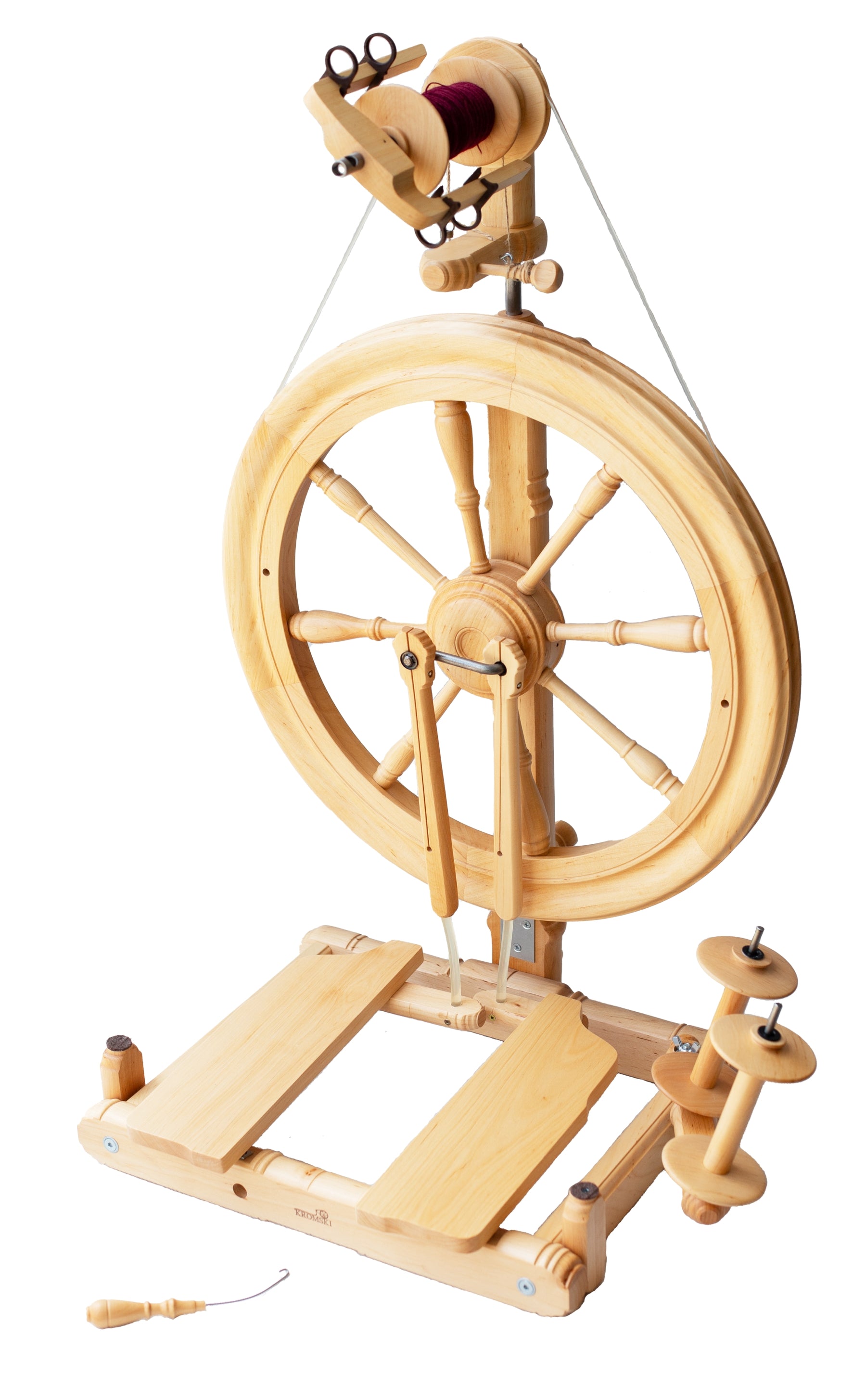 Give each bobbin greater capacity with a Jumbo Flyer upgrade. This flyer takes Kromski Jumbo Bobbins, which hold 1.6 times the standard bobbin. Perfect for art yarns, the flyer has a loop/pigtail orifice which allows textured yarns easy passage. The larger bobbins also mean longer time spinning between changes and fewer joins when plying.