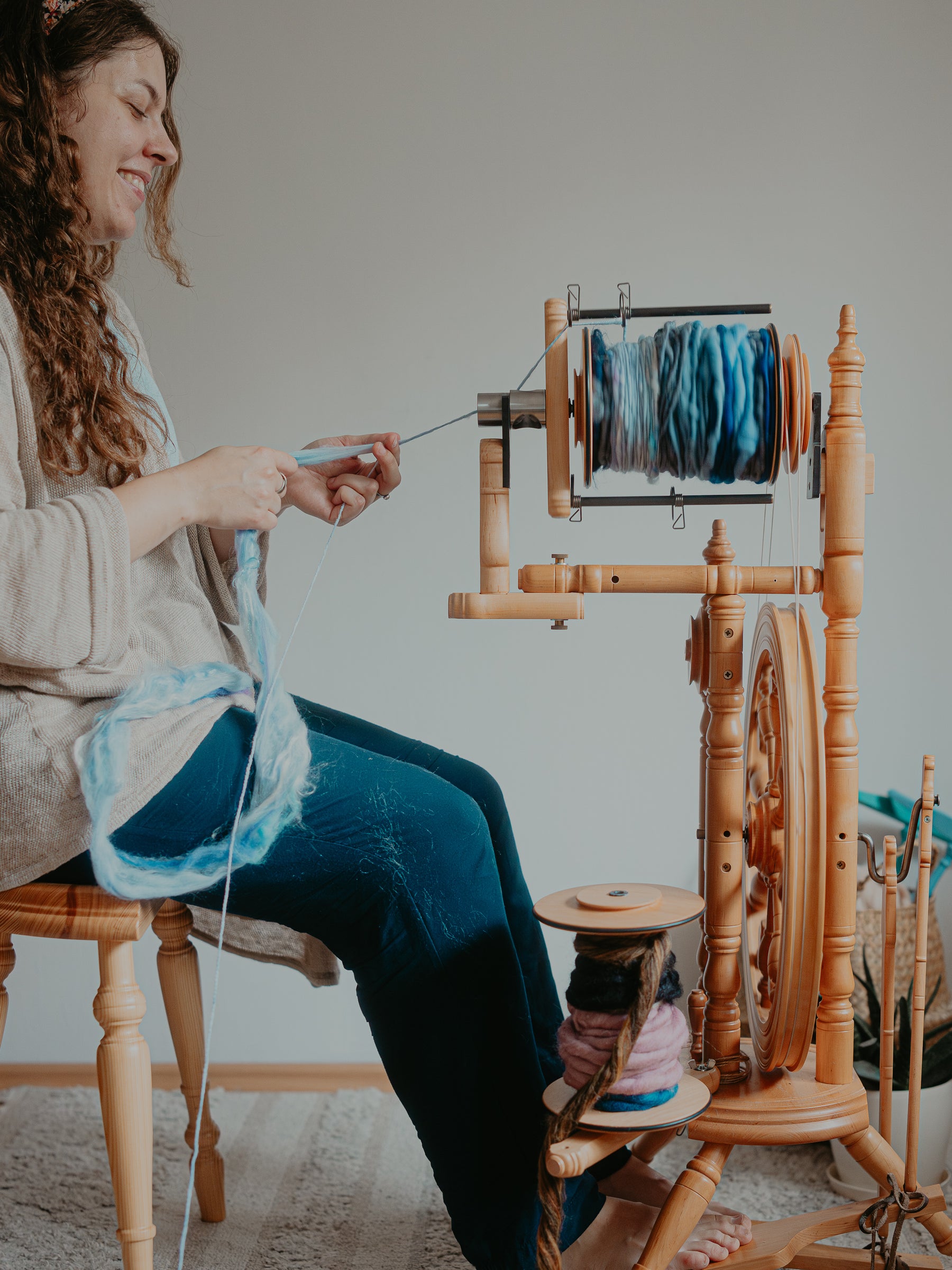 The Great Bobbins can each hold 5.9 times the regular Kromski bobbins, which is approximately 700g (24.8oz) of fibre!